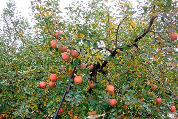 Только что высаженные яблони сорта Конфетное нуждаются в регулярном увлажнении – раз в 7 дней. Осенью орошайте приствольные круги, используя не менее 10 л воды на 1 саженец. Весной поливы необходимы только в случае отсутствия дождей и пересыхания почвы.