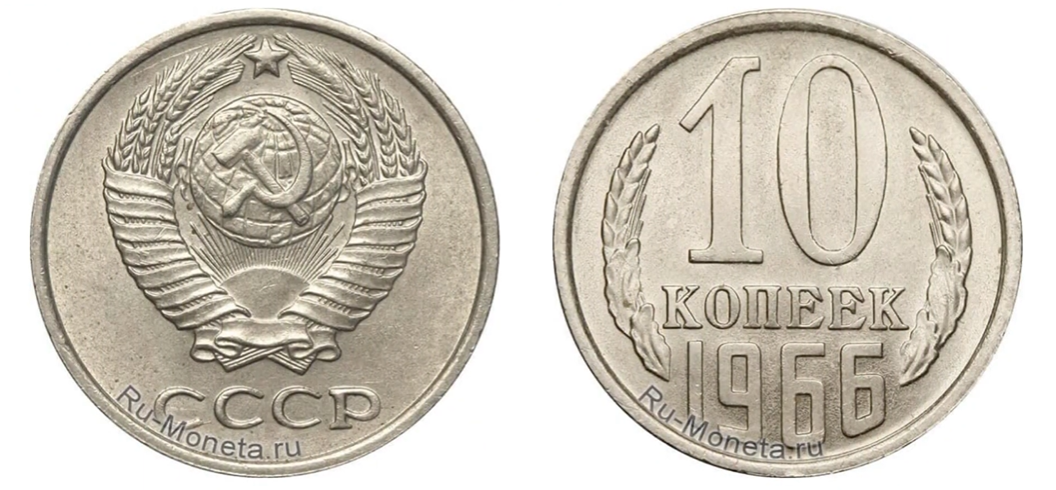 Всем привет, друзья! Вы на канале «21-й век: о стоимости редких монет». Как всегда, по просьбе наших подписчиков, сегодня я расскажу вам о монете 10 копеек 1966 года. Вы должны знать, что монета 10 копеек 1966 года была отчеканена в единственном варианте и разновидностей она не имеет. Если кто-нибудь из вас все-таки нашел разновидность, то напишите нам в комментариях или покажите в нашем сообществе. Друзья, в этой статье вы узнаете все нюансы по аверсу монеты, и сколько эта монета может стоить на сегодняшний день. Аверс или лицевая сторона монеты это та, на которой изображен герб. Чеканка аверса монеты производилась на Ленинградском монетном дворе. Был применен вариант штемпеля, который начали использовать ещё в тираже 1961 года. Этот штемпель в неизменном виде применялся далее до конца семидесятых годов. Но из всей этой массы только образцы 1965-го и 1966 года являются редкими и дорогими. О них читайте в других наших статьях. Их каталожная цена более 4 000 рублей. При этом, судя по