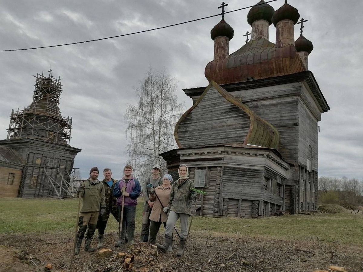 Во время субботника у старых храмов в селе Архангело Каргопольского района под спиленными кустами нашли старинные надгробия.
