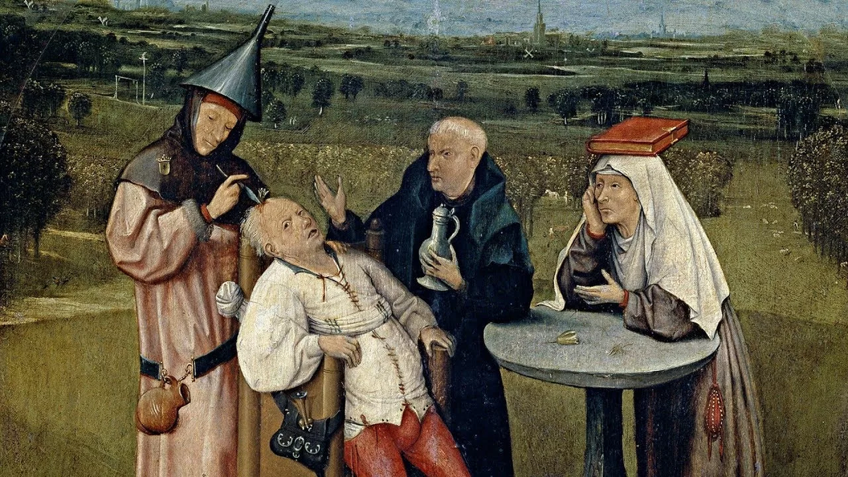 Иероним Босх (предположительно). Извлечение камня глупости. 1510-1520 годы.