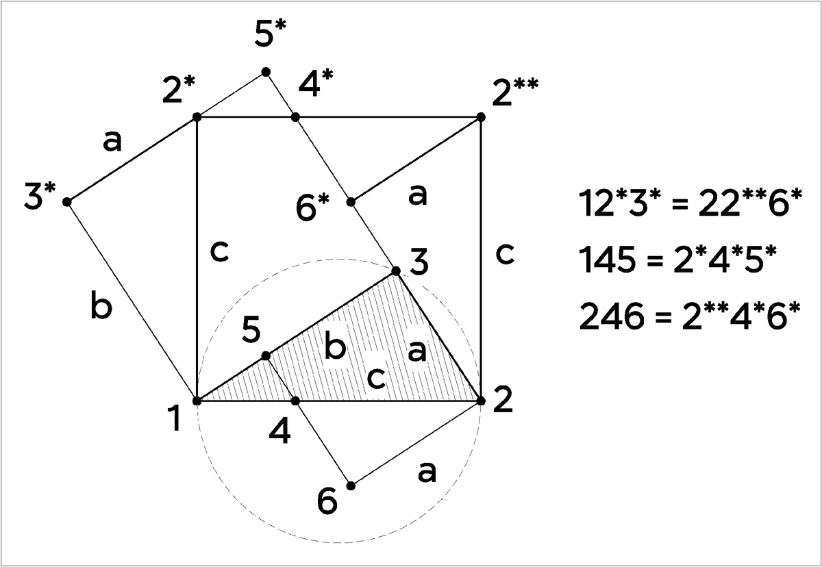 Что может быть грандиознее и возвышеннее старой доброй теоремы Пифагора? Если задуматься, то она - фундамент всего человеческого естественно-научного знания! Ибо она заключает в себе концентрированное описание нашего евклидова пространства. Она является базой для Декартовой системы координат. Она же - в основе построения всего множества "неевклидовых" геометрий! Считается, что к настоящему времени существует под четыре сотни доказательств этой теоремы. В свете вышесказанного, это количество - крайне сомнительно. Скорей всего, подавляющая масса доказательств - вариации некоего исходного набора. А, может быть, и - вообще! - одного. Предлагаемое доказательство - см. рис. - конечно, вряд ли является оригинальным. Но, несомненно, оно является весьма компактным и... И: "очевидным"! Но что скрывается за этой "очевидностью"? Дело в том, что "неявно" подразумевается, что при повороте треугольника на какой-то угол в образуемой им "плоскости" он остаётся "самим-собой". Т.е.: а) его стороны -