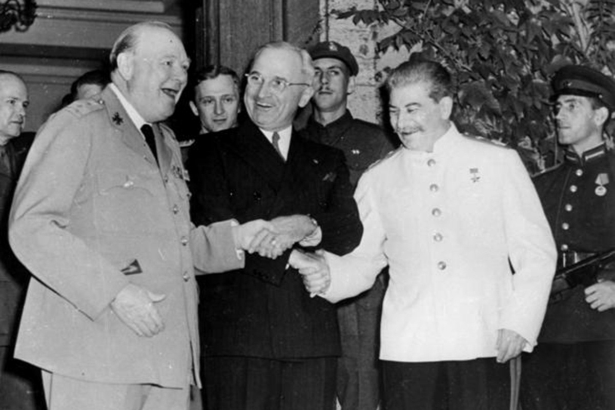 Позже в июле 1945-го Потсдамская конференция проходила уже в атмосфере нарастающей взаимной подозрительности. Новый американский президент Трумэн, только что получивший сообщение об успешном испытании атомной бомбы, вел себя вызывающе. Черчилля, проигравшего выборы, в середине конференции сменил Эттли. Только Сталин оставался неизменным, как скала, последовательно отстаивающий интересы СССР.