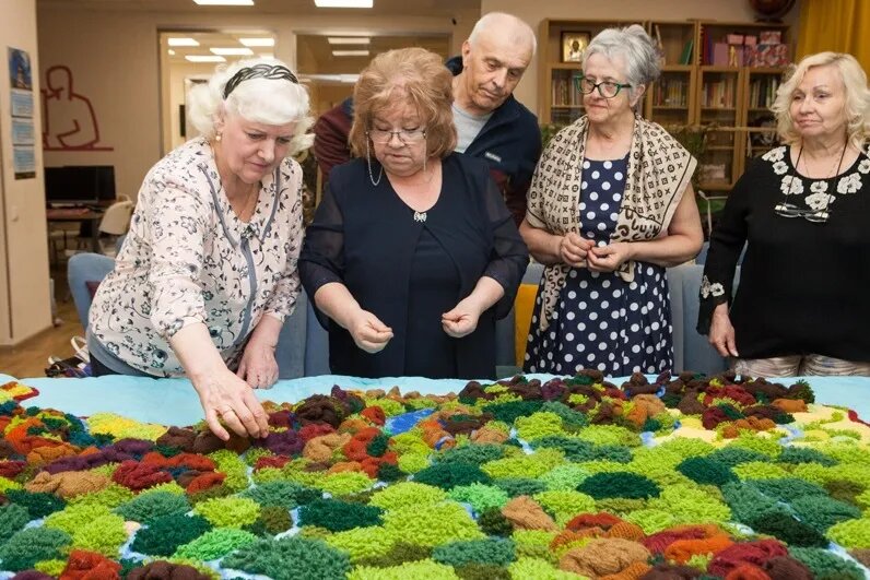 Жительницы города Рассказово в Тамбовской области создали уникальную карту России - на ее изготовление ушло два когда и 10 кг пряжи. О необычном арт-проекте пишет издание ТОП68. Авторы проекта - Галина Погуляева и Марина Елютина. Мастерицы рассказывают, что работу они начали с изучения картографии: прежде чем приступить непосредственно к изготовлению, они изучили историю карт, их виды и способы создания. Только после этого смогли приступить к конструированию и моделированию. Размер карты - 2,5 на 4 метра. 90% использованной пряжи - местного, рассказовского, производства, лишь небольшую часть ниток взяли новосибирской и других фабрик. Вязалась карта спицами из уникальной коллекции, в том числе вязальными инструментами 30-х годов прошлого века. При помощи точных математических расчетов авторы создали изображение карты в масштабе 1:14, а затем перенесли его на ткань и закрепили нитками. Только после этого можно было начать основной этап - непосредственно вязание. Карта состоит из более ч