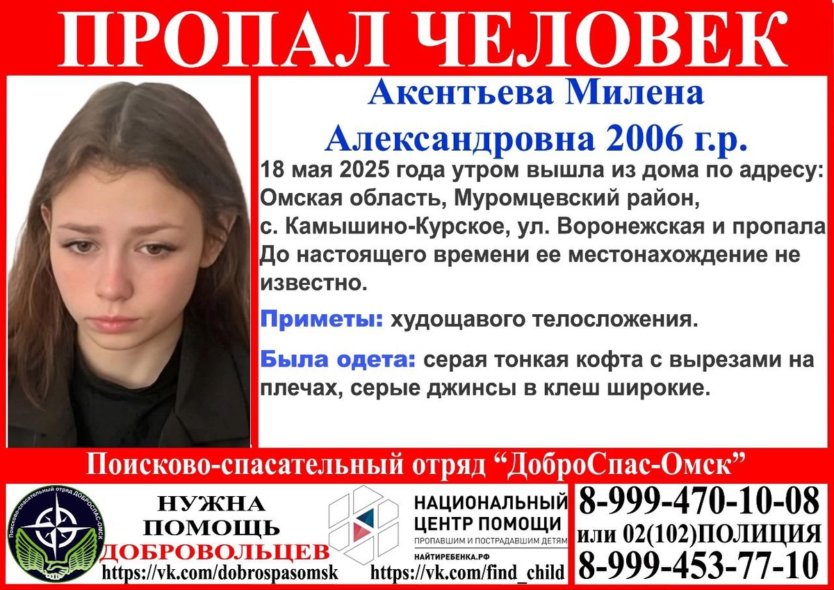 Девушку не могут найти уже пятый день. В Омской области продолжаются поиски 11-классницы Милены Акентьевой, местонахождение которой остается неизвестным. Сегодня, 22 мая, поисковый штаб был перенесен: теперь он работает не в деревне Камышино-Курское, как ранее, а в соседнем населенном пункте – Камышино-Воронежском. Базу развернули на улице Воронежской, именно отсюда сегодня стартовали новые этапы поисковой операции. Для обследования труднодоступных и открытых территорий к поискам подключили квадрокоптеры. Волонтёры, сотрудники экстренных служб и неравнодушные местные жители продолжают прочесывать местность в надежде как можно скорее найти пропавшую девушку. Напомним, что ранее появились новые детали пропажи. Очевидцы утверждают, что видели Милену в компании молодых людей возле автомобиля УАЗ с надписями «Храм» на бортах. Полиция проверяет эту информацию. Алексей Новиков