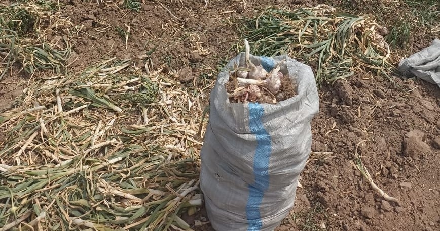 Базар-Коргондук фермер сарымсактын мол түшүмүн жыйнап, бадыраң отургузууга даярданууда.
