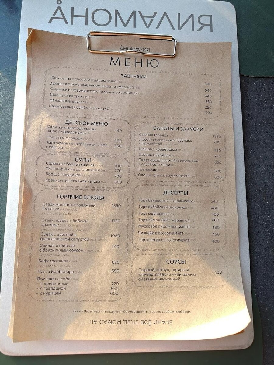 Меню в «Аномалии» выглядит уверенно: всё привычное, но с акцентом на понятную гастрономию — драники, сырники, шакшука, фермерский творог