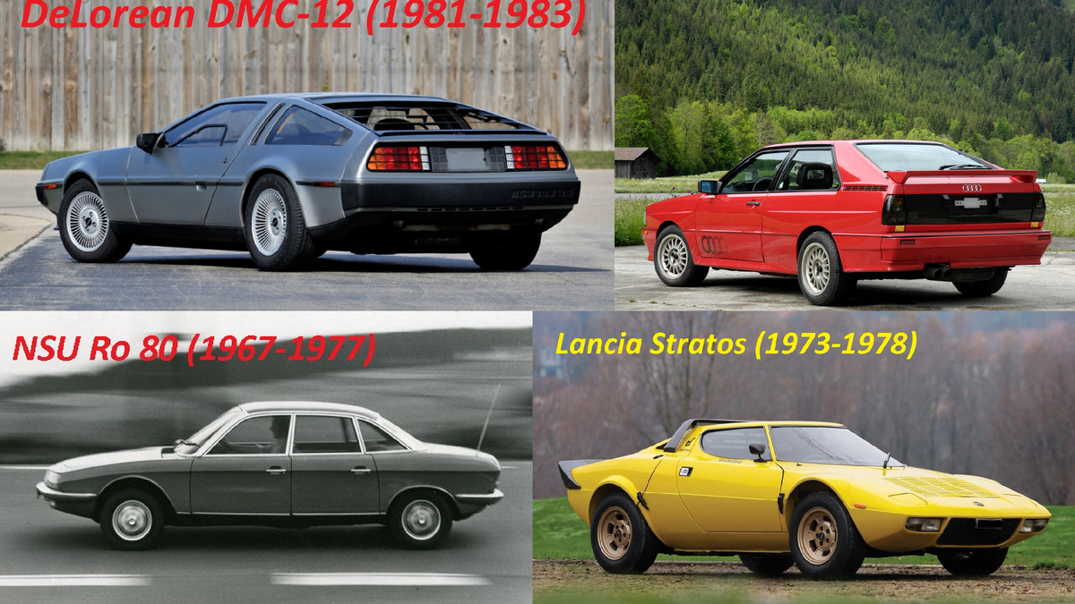 2. NSU Ro 80 (1967-1977): Элегантный и прогрессивный седан с роторным двигателем Ванкеля. Несмотря на проблемы с надежностью роторного двигателя, Ro 80 продемонстрировал потенциал этой технологии и представил аэродинамичный дизайн, ставший предвестником будущего.