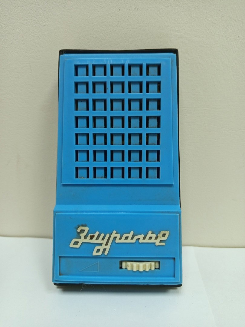 Радиоприемник "Зауралье". Лицевая сторона голубая, задняя - черная. Без провода. 1988 Источник: "Центр культуры и библиотечного обслуживания" Половинского муниципального округа Курганской области https://vk.cc/cMaTag