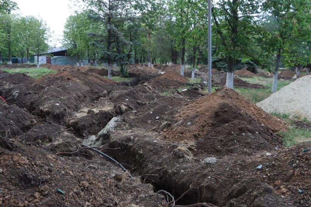 На данный момент уже выполнены земляные работы по прокладке траншей для электроснабжения, видеонаблюдения и водоснабжения. Котлованы для водяных колодцев готовы. На строительной площадке присутствуют все необходимые материалы.