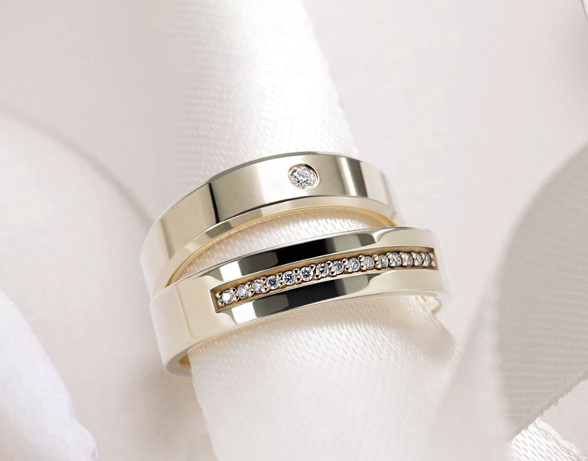 Если же вкусы у вас с партнёром немного расходятся (и это нормально — вы же два разных человека), обратите внимание на комбинированные модели. Это кольца, в которых сочетаются два цвета золота — скажем, жёлтое с белым или белое с красным.