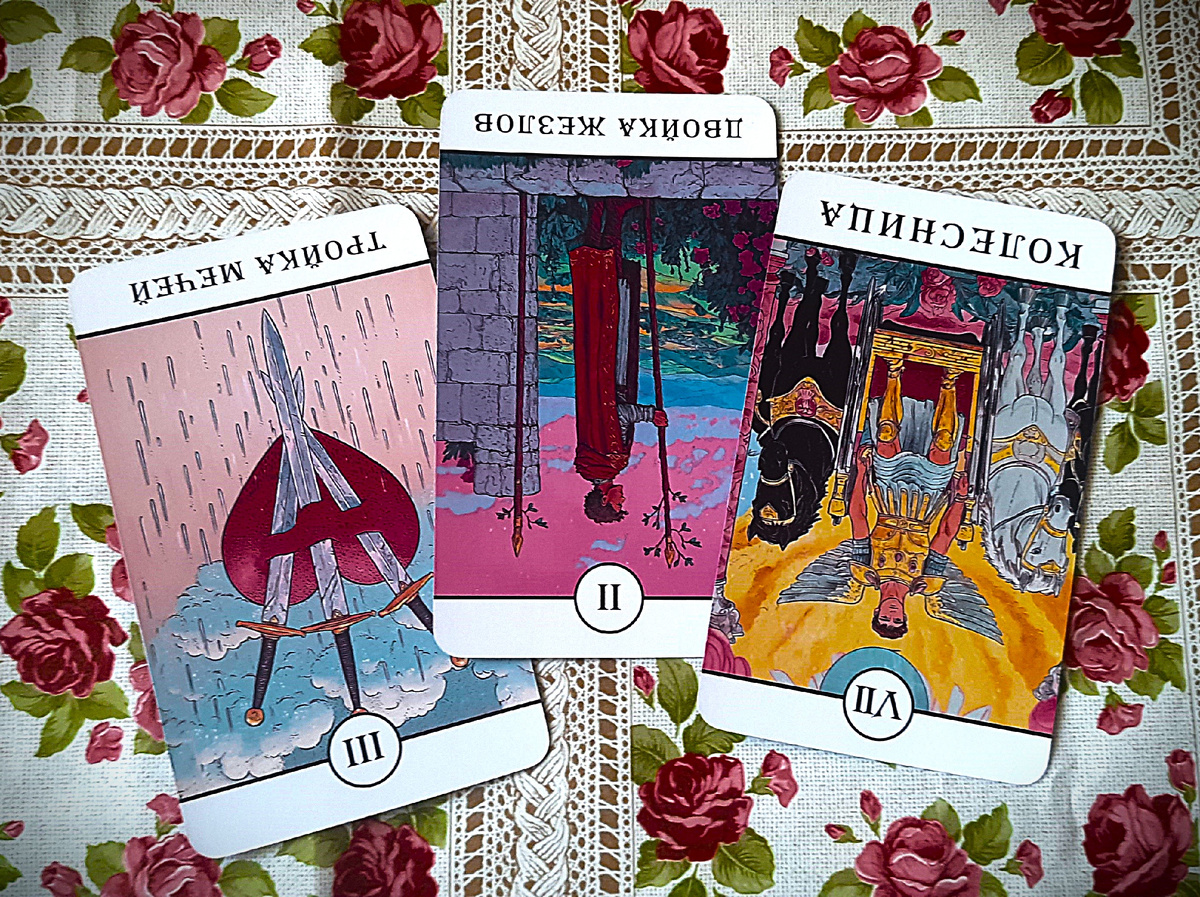 Перевернутая Колесница подчеркивает потерю контроля и внутреннюю растерянность. Он ощущает, что его жизненный путь не ведет туда, куда он хотел бы попасть, и что обстоятельства или внутренние барьеры мешают ему двигаться вперед.