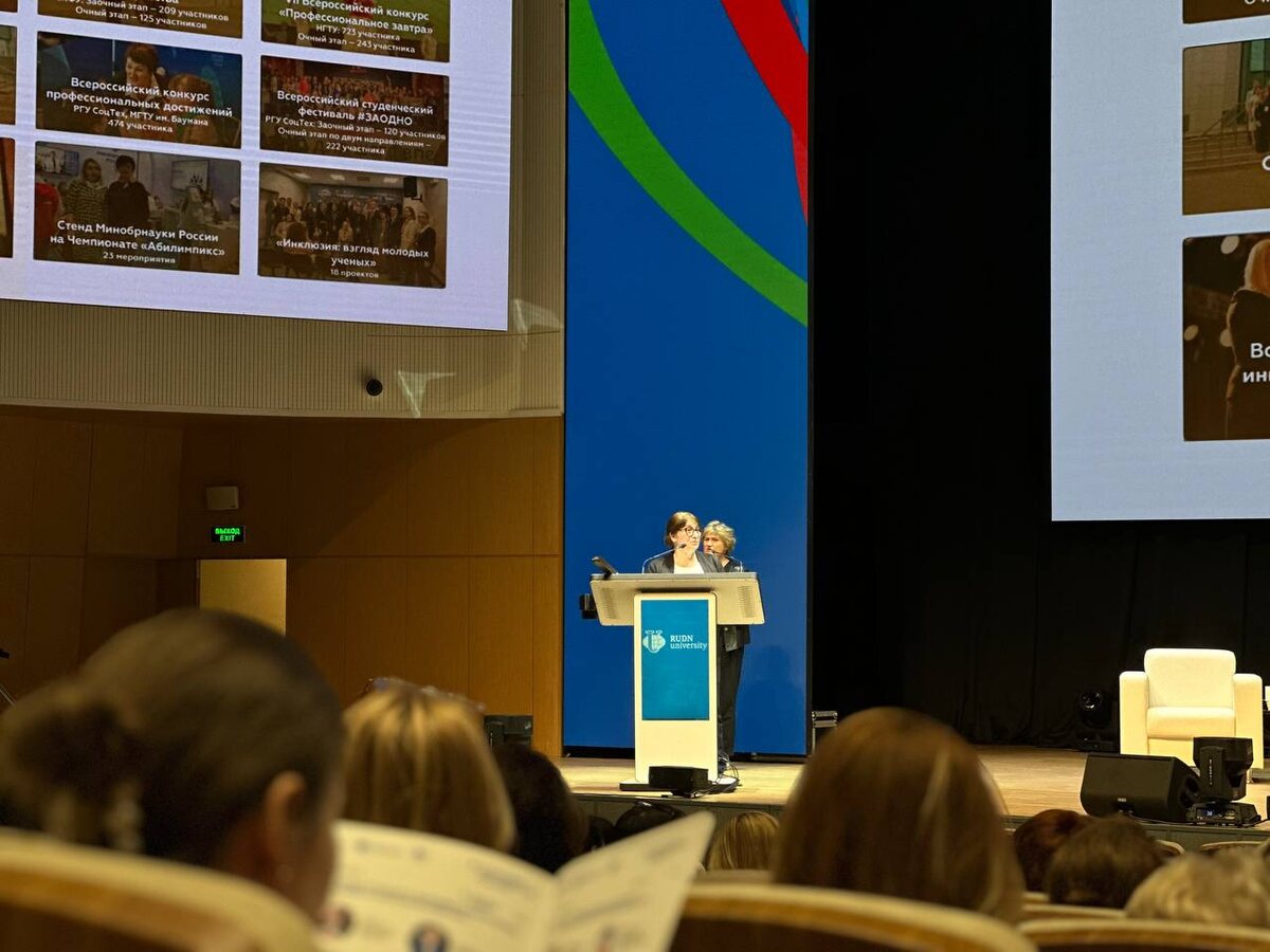Доклад также представила Марьяна Барасбиевна Соколова, директор Координационного центра инклюзивного высшего образования. Она рассказала об этапах создания, показателях и текущей деятельности сети ресурсных учебно-методических центров, деятельности молодёжного сообщества при Совете при Минобрнауки России по развитию ИВО, а также пригласила вузы к участию в предстоящих мероприятиях: конференции по экономической модели (июнь, Ростов-на-Дону), обновлённом конкурсе «Профессиональное завтра» (декабрь, Москва) и презентации двух компетенций высшего образования на финале Национального чемпионата «Абилимпикс — 2025». Сеть РУМЦ ИВО