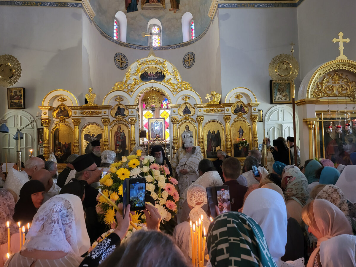 Раз в году на праздничное Богослужение приходит Патриарх Иерусалимский.