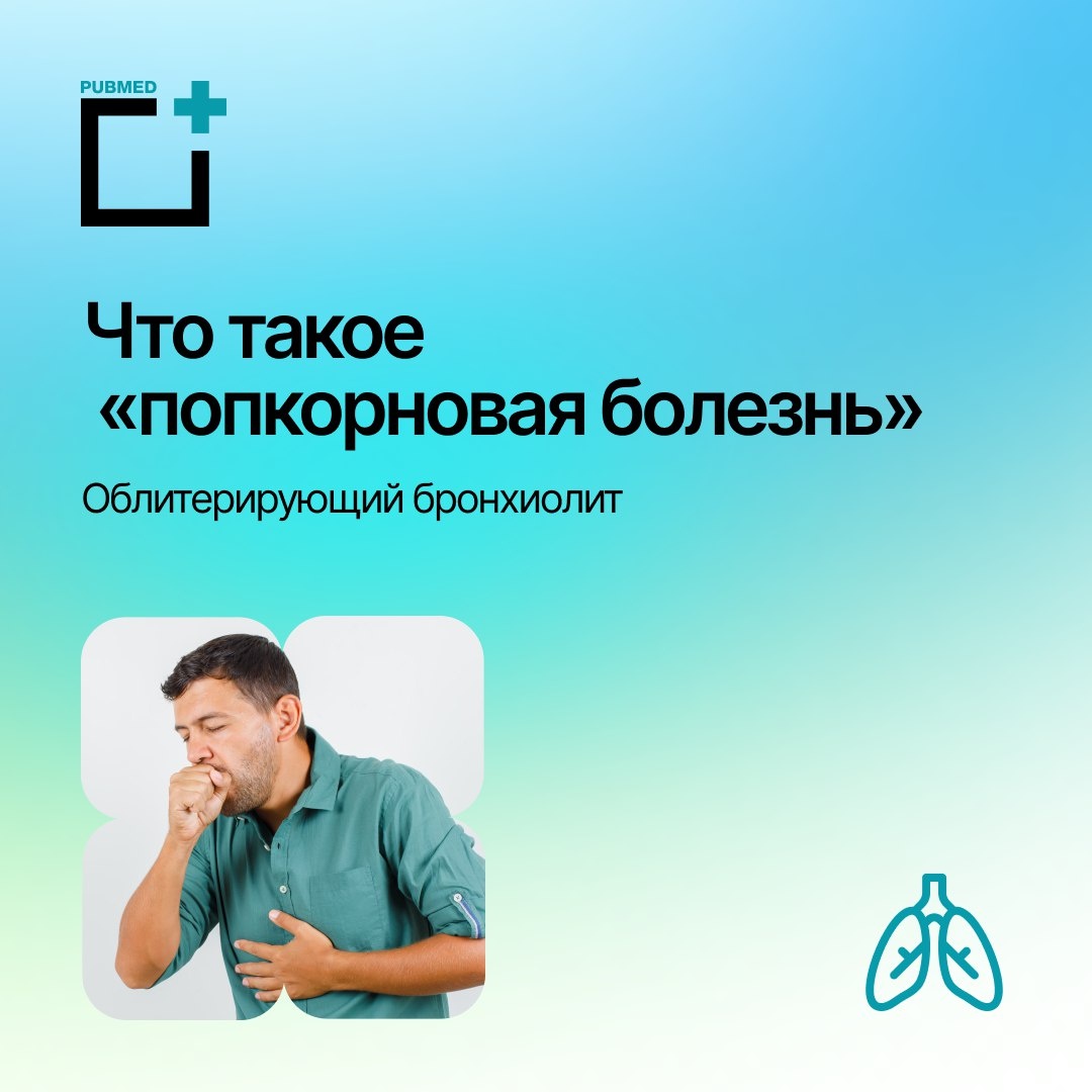 Облитерирующий бронхиолит — это редкое и необратимое заболевание лёгких, при котором мелкие дыхательные пути (бронхиолы) воспаляются и рубцуются, что приводит к их сужению и затруднению дыхания. Название «попкорновая болезнь» возникло после того, как в 2000 году у работников завода по производству микроволнового попкорна в США было диагностировано это заболевание. Причиной стал диацетил — химическое соединение, придающее попкорну характерный масляный вкус. При вдыхании его паров в больших количествах развивается воспаление и фиброз бронхиол. Причины облитерирующего бронхиолита: - Вдыхание токсичных веществ: диацетил (используется в пищевой промышленности), ацетальдегид, формальдегид, аммиак, хлор, диоксид серы и другие химикаты - Респираторные инфекции: респираторно-синцитиальный вирус (RSV), некоторые виды пневмонии и бронхита - Аутоиммунные заболевания: ревматоидный артрит - Осложнения после трансплантации лёгких или костного мозга Симптомы: Заболевание может развиваться постепенн