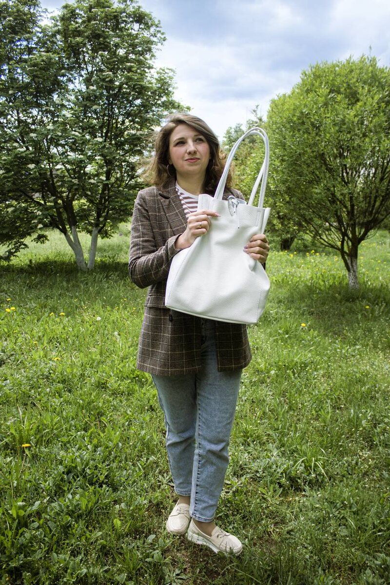Белоснежный кожаный шоппер без подкладки. Легко сворачивается в элегантный клатч и не занимает много места. Art. 3728 #verapelle Вместительный стильный и актуальный во всех сезона кожаный шоппер без подкладки. Производство: Италия. Размер: 37(высота) / 28 / 12 см, высота ручек 23-26 см. Цена: 8.400₽. Цена VIP клуба 6.500₽. Оформить покупку в интернет-магазине: https://marie-bag.ru/offer/858996/ Подробнее о товаре в этой публикации: https://dzen.ru/media/marie_bag_store/vmestitelnyi-stilnyi-i-aktualnyi-vo-vseh-sezona-kojanyi-shopper-bez-podkladki-680f357684e18d610bfd51ba