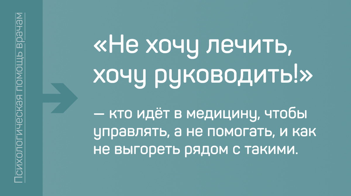 Те, кто идёт в медицину, чтобы командовать, а не лечить — часто сами травмированы. Но они не лечатся. Они поднимаются вверх и, не умея быть собой, начинают управлять всеми, чтобы не чувствовать свою уязвимость.