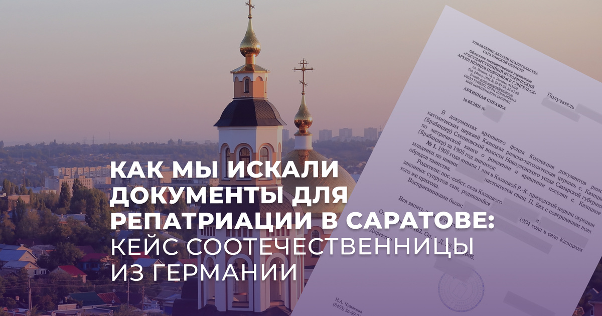 К нам обратилась гражданка ФРГ, желавшая переехать в Россию по Государственной программе переселения соотечественников. Основанием стало рождение её дедушки в 1904 году на территории современной Саратовской области.