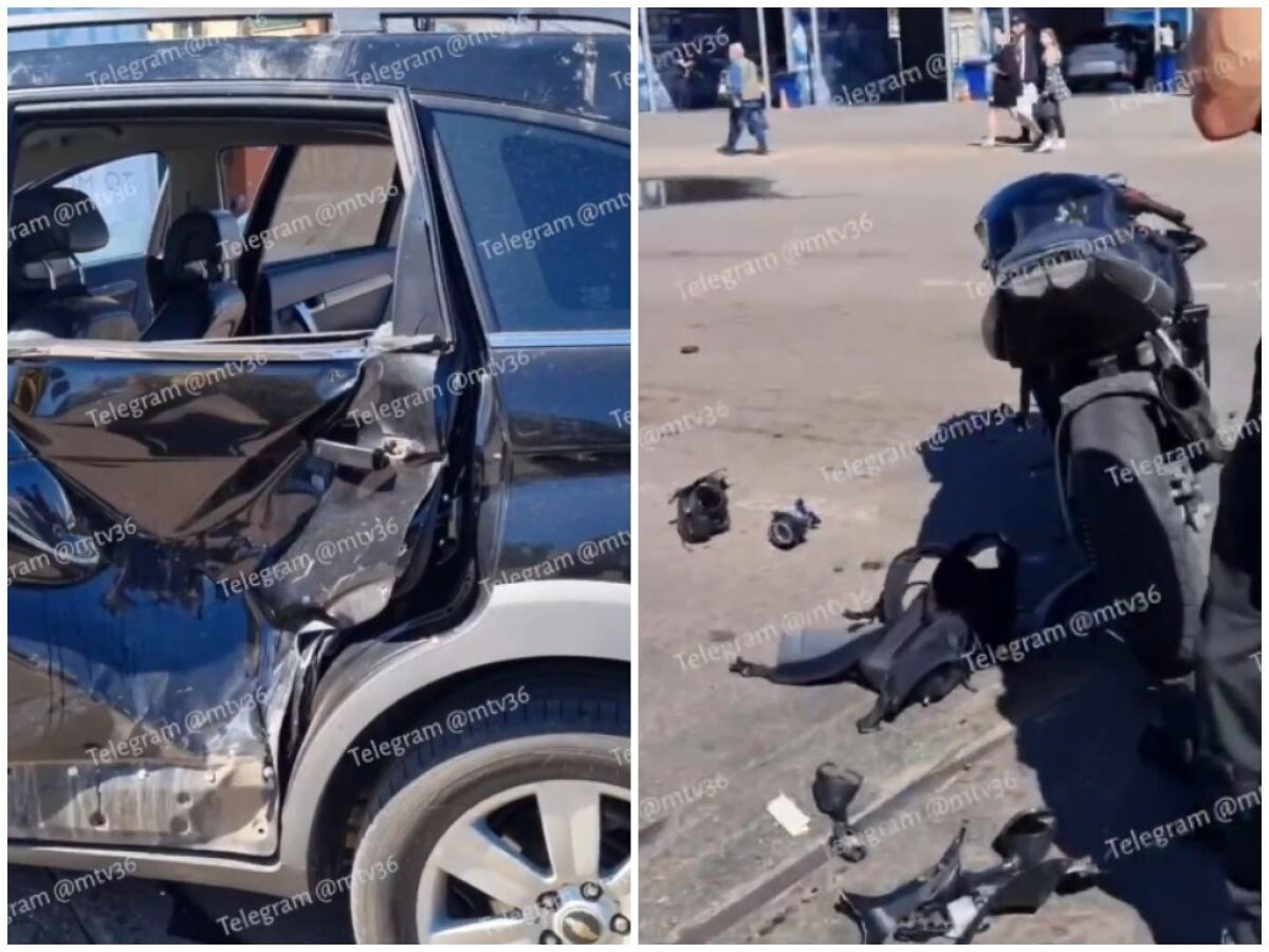От мотоцикла отлетели запчасти, бок машины смят: в Воронеже случилось жуткое ДТП