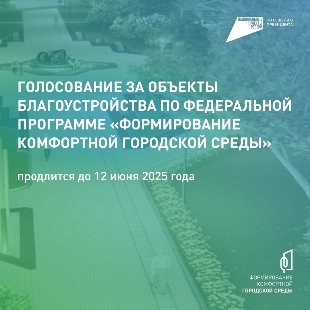 Голосование за объекты благоустройства по федеральной программе «Формирование комфортной городской среды» нацпроекта «Инфраструктура для жизни» продолжается.