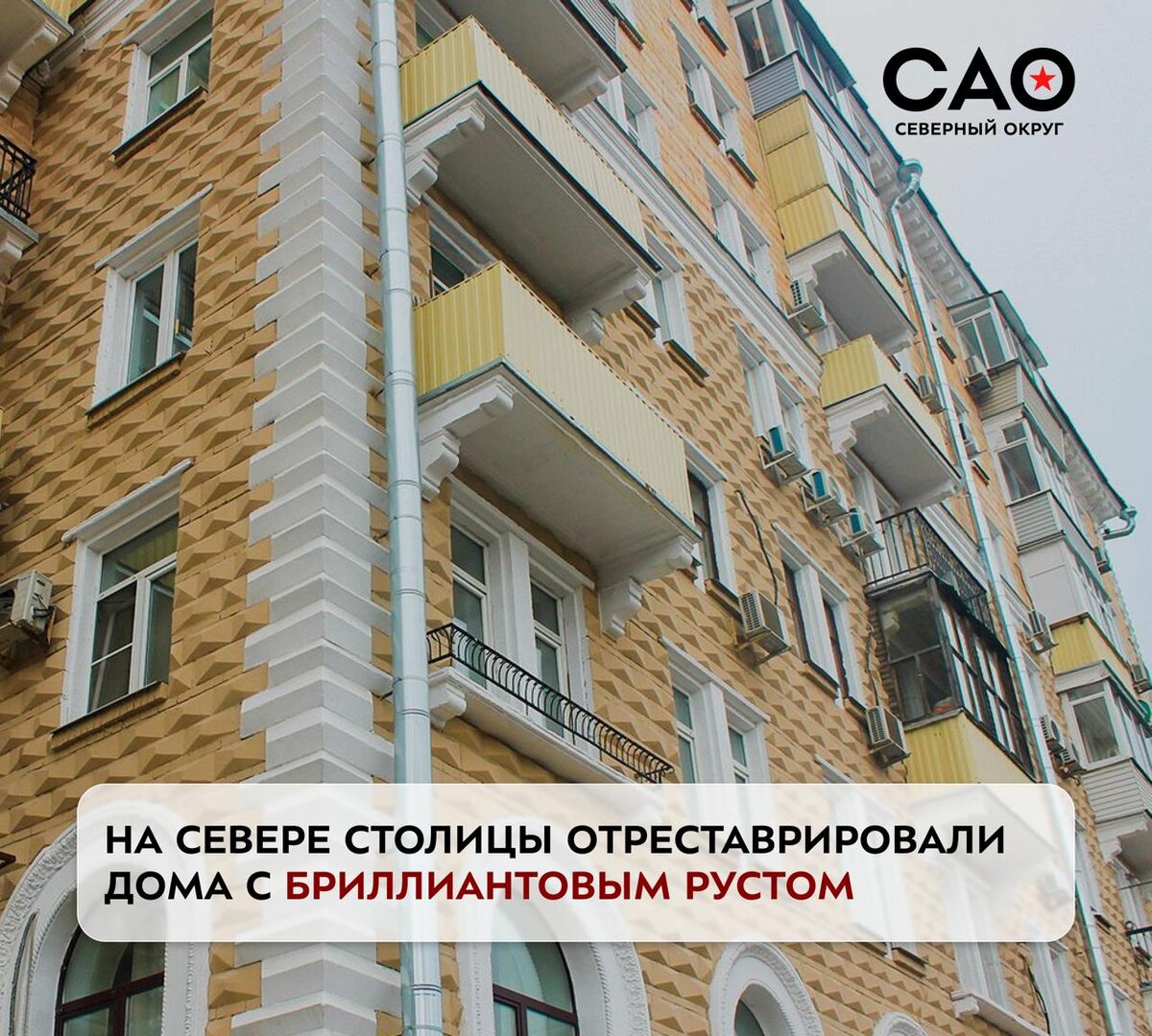 В районе Сокол капитально отремонтировали жилые здания с уникальной декоративной кладкой — бриллиантовым рустом. Такие дома строили в середине XX века в стиле советской неоклассики.