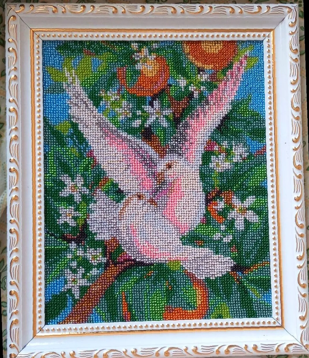 Недавно я довышивала бисером картину "Запах апельсина". Набор для вышивки также как и предыдущие куплен на Озоне. Размер картины без рамки получился примерно 20*25 см. Рамку заказывала в багетной мастерской облцентра. Была продана подруге мамы, на свадьбу ее родных. Надеюсь им понравится такой подарок, сделанный своими руками. Сейчас начала другую вышивку. Гораздо большего размера по сравнению с предыдущими. Пришлось даже купить пяльцы-рамку побольше. А вы, дорогие друзья и подписчики, как оцениваете мою картину из бисера? Пишите в комментариях. Кто-то из вас занимается каким-либо видом рукоделия? Можете показать свои работы, обязательно посмотрю.