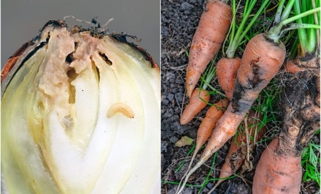 Личинки луковой мухи не боятся фитонцидов и с удовольствием лакомятся перьями и луковицами. Не отстает и потомство морковной мухи, которое вытачивает в корнеплодах отверстия. Чтобы сберечь урожай, понадобится поистине эффективное средство: https://www.ogorod.ru/ru/now/pests/20627/Kak-zashchitit-luk-i-morkov-ot-vreditelej-effektivnye-resheniya.htm?utm_source=telegram