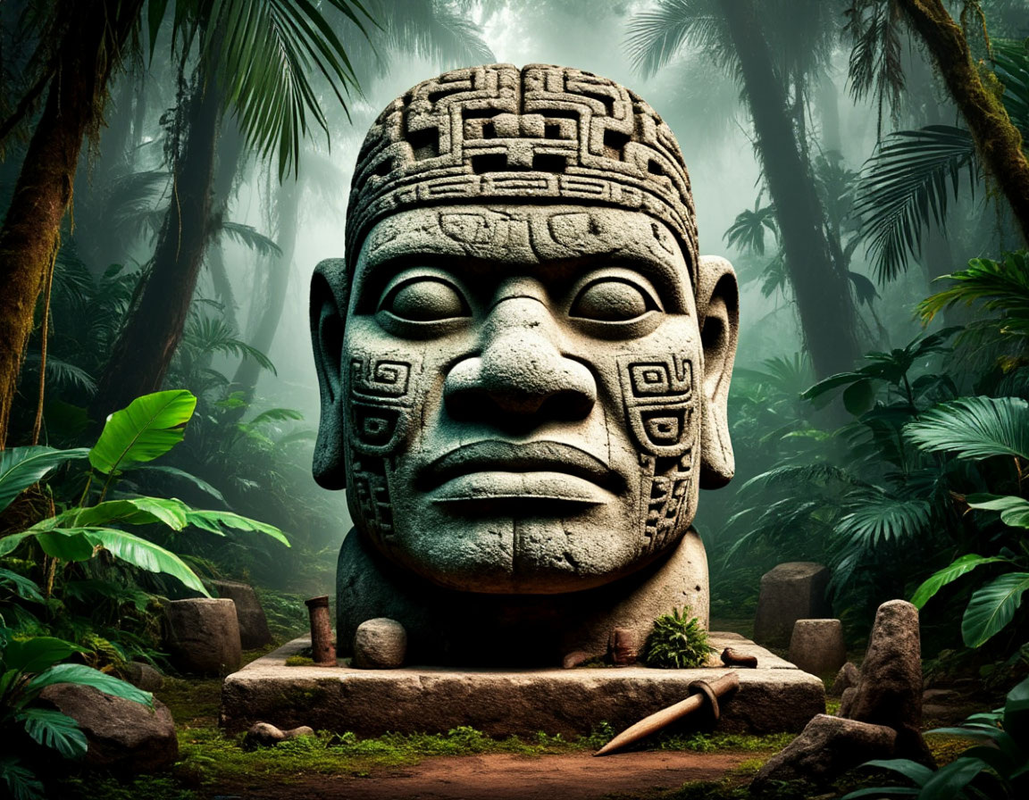 Ученые предполагают, что это были портреты правителей или воинов. Но загадка в том, как ольмеки перевозили эти глыбы без колеса и без животных — ближайший камень был за десятки километров! В Ла-Венте обнаружены скелеты младенцев с деформированными черепами — вероятно, ритуальные убийства. Ольмеки верили, что их цари — оборотни-ягуары. В гробницах находят керамику с когтями и клыками. Ольмеки первыми в регионе начали использовать иероглифическую письменность. На их артефактах встречаются