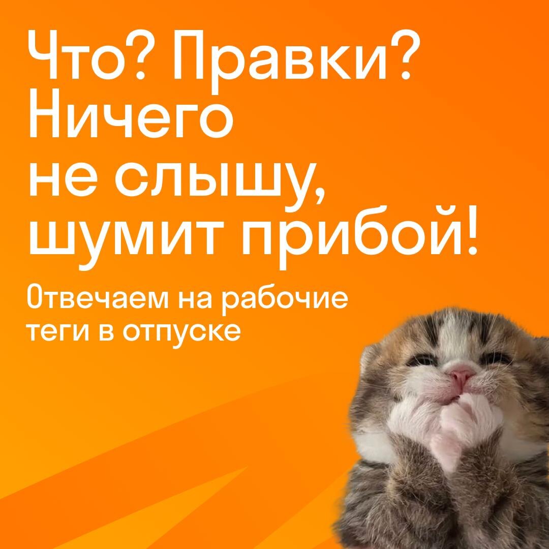 Привет! Я в отпуске. Знаю, немного обидно, но ты там держись.