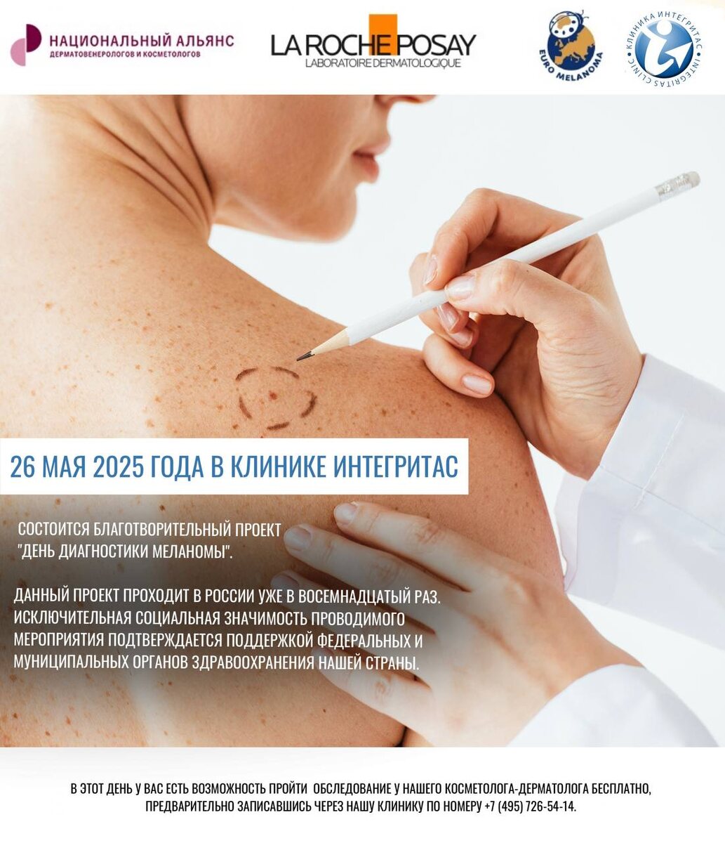 Уважаемые пациенты, информируем вас, что 26 мая в Клинике Интегритас состоится «День диагностики меланомы» 🥼
