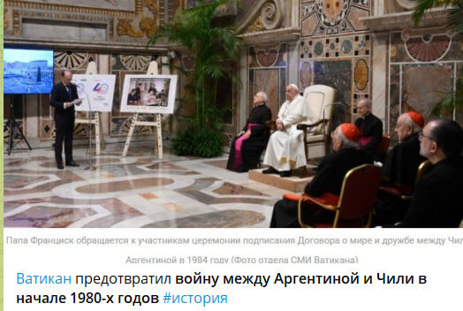 Ватикан предотвратил войну между Аргентиной и Чили в начале 1980-х годов #история В 1978 г обе страны оказались на грани вооружённого конфликта из-за спора о суверенитете над островами в Бигль-канале. В ответ на эскалацию напряжённости, Папа Иоанн Павел II предложил посредничество, отправив кардинала Антонио Саморе в Буэнос-Айрес и Сантьяго. Его усилия привели к подписанию в январе 1979 года Акта Монтевидео, в котором обе страны официально обратились к Папе с просьбой о посредничестве и отказались от применения силы. В результате, в ноябре 1984 года был подписан Договор о мире и дружбе, который окончательно урегулировал пограничный спор между двумя странами. Этот дипломатический успех стал примером эффективного миротворчества. Возможно (надеюсь), что нынешний конфликт 🇷🇺🇺🇦- будет разрешен с помощью Ватикана. Поскольку "завершить CBO между Россией и Украиной в течение 24 часов после своего избрания" у Трампа не получается ((