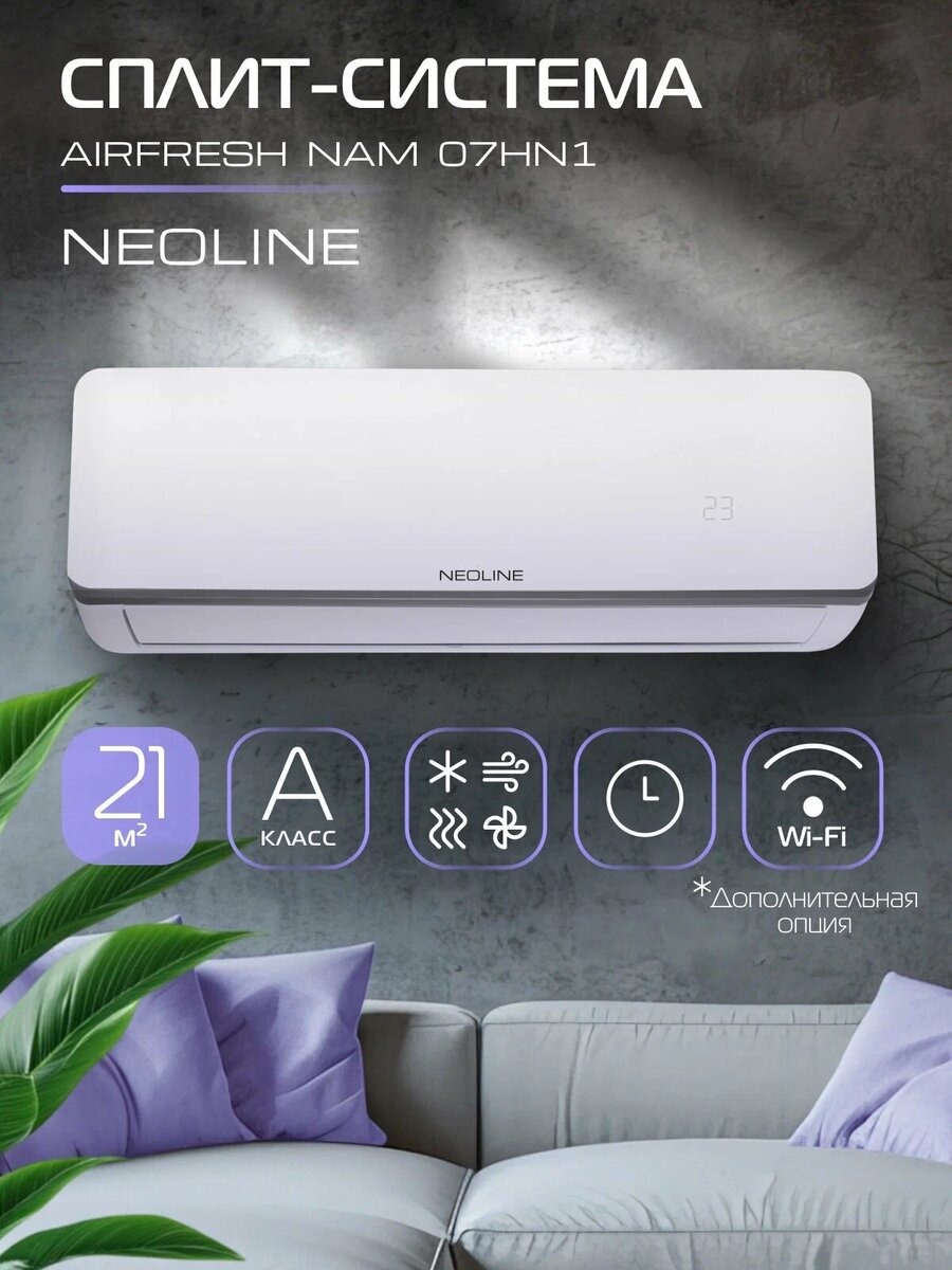 Серия высокопроизводительных традиционных сплит-систем NEOLINE NAM-07HN1 серии AIRFRESH 2024 года, выполненная в минималистичном дизайне и белом глянцевом цвете, станет естественной частью любого интерьера: квартиры, офиса, загородного дома.