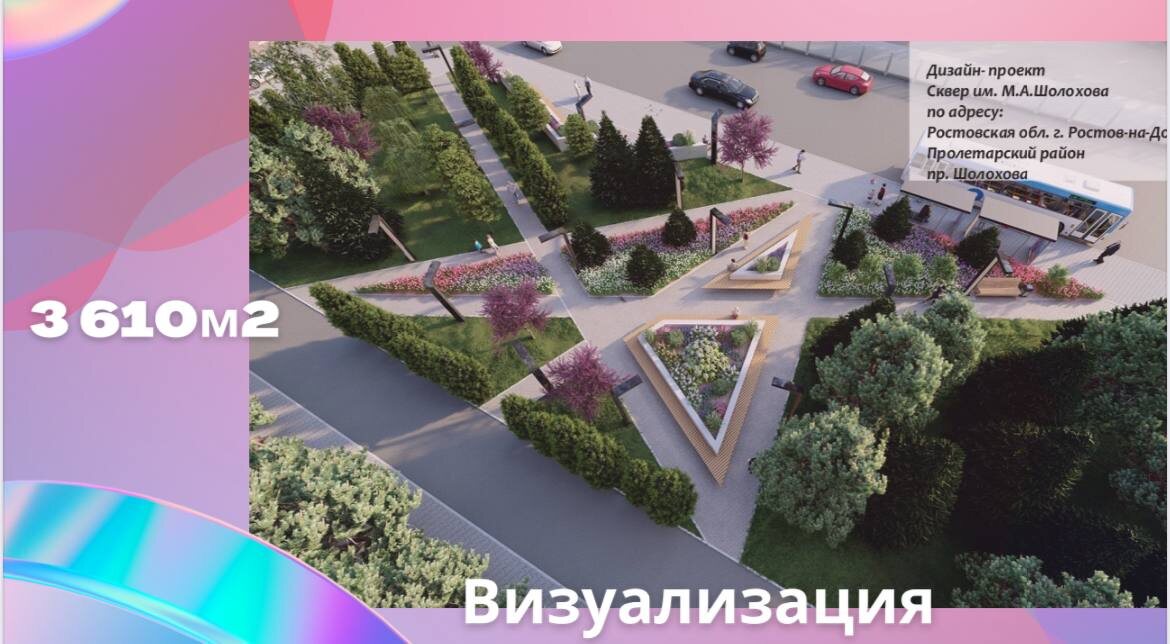«На сегодняшний день из пяти объектов, которые были выдвинуты комиссией, сквер имени М. А. Шолохова занимает третье место. За него отдали свои голоса почти 5000 человек. Дизайн-проект разработан с учетом пожеланий жителей. Конечно, нам тяжело конкурировать с территорией в Левенцовке, там жителей больше, множество многоэтажек и, соответственно, голосов. Мы привлекаем к голосованию всех жителей Пролетарского района», – поделилась Наталия Воейкова.