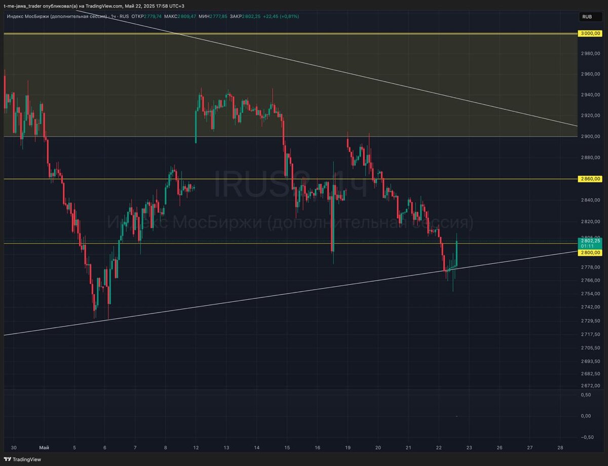 Вышла интересная новость: Принято решение о создании буферной зоны безопасности вдоль границы России и Украины, заявил президент РФ Владимир Путин. Рынок сразу взбодрился и стал отскакивать, вышли выше зоны поддержки 2800 по Индексу Мосбиржи 🇷🇺 $IMOEXF $MXM5 $MMM5 Если неделю так и закончим откупом, то это позитивно. Новость интересная, как я считаю, такие действия говорят о скором завершении конфликта. 👉 Подпишись на Jawa Trader
