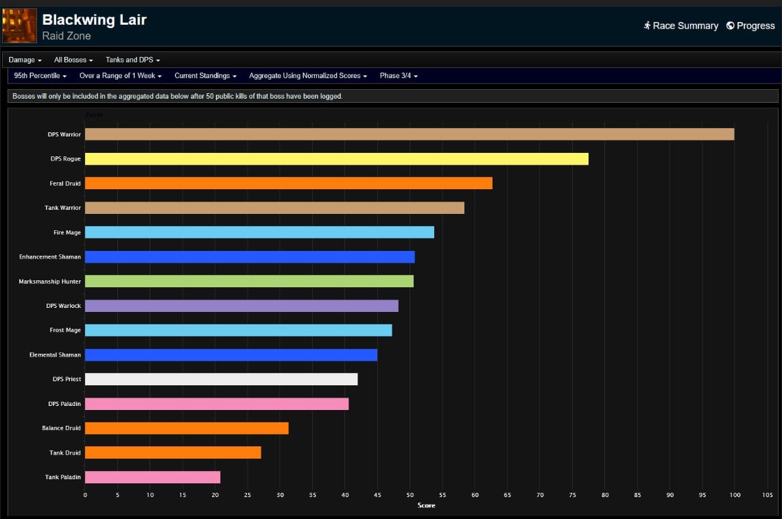 А вот статистика рейтинга DPS в Фазе 4 — Неделя, Логова Крыла Тьмы 20 мая