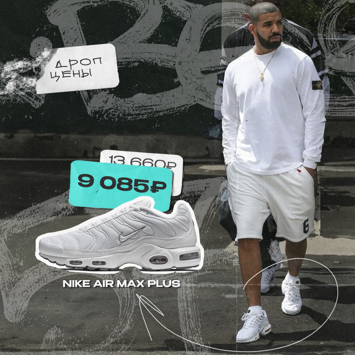 Стиль у него хорош, так что мы периодически вдохновляемся. Белые Nike Air Max Plus подсмотрели у него, и кроссовки попали в «Дроп цены». Стоимость актуальна только сегодня. Nike Air Max Plus, цена от 9 085₽* (вместо 13 660₽) *стоимость может изменяться в зависимости от курса и размера Больше интересного на нашем сайте POIZON