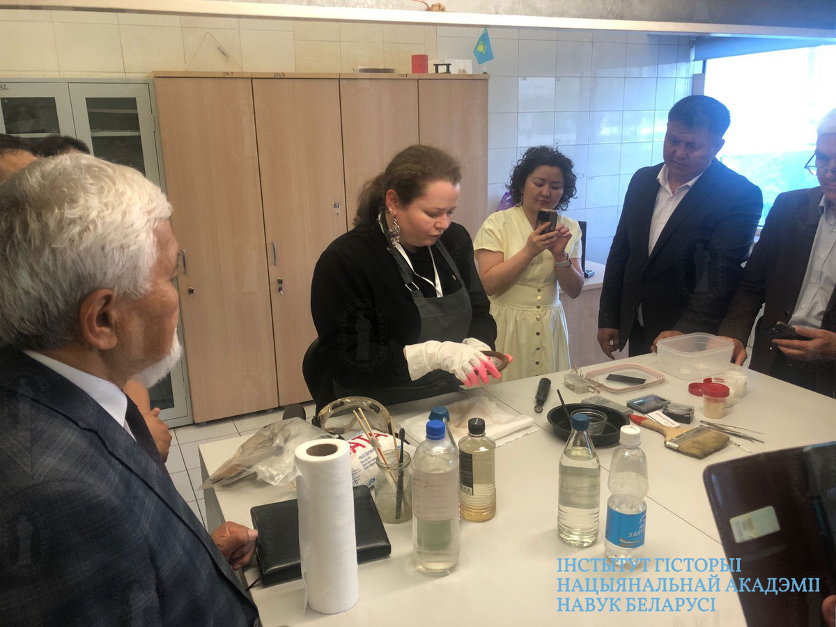 21 мая 2025 г. В рамках III Казахстанского музейного конгресса прошёл ряд мастер-классов по реставрации. Заведующая отделом научной консервации археологических артефактов Института истории НАН Беларуси Анастасия Костюкевич провела мастер-класс по очистке этнографического металла для сотрудников музеев Казахстана.