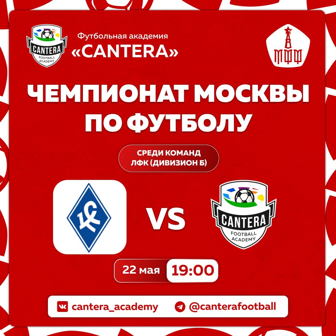 Уже сегодня 💪 Предстоит игра на выезде в ЛФК. На этот раз соперником нашей «Cantera» станет команда «Крылья Советов». Игра состоится в 19:00 в Манеже «Олимп» ⚡️ VAMOS CANTERA! ❤️🔥