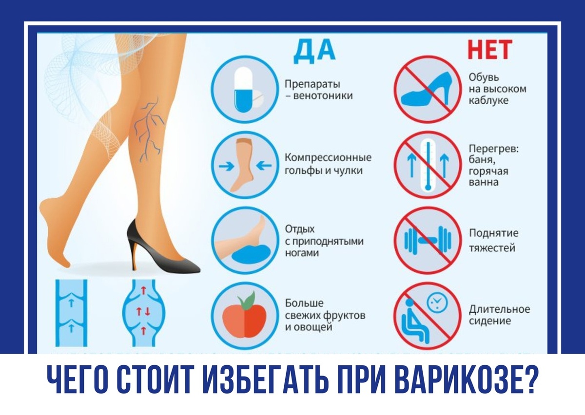 Узкие сапоги, туфли, обтягивающие брюки: Могут сдавливать вены, препятствуя нормальному кровотоку. - Курение и хронические заболевания: Курение негативно влияет на состояние сосудов в целом, а хронические заболевания (например, гипертония, сахарный диабет) могут усугублять проблемы с кровообращением.