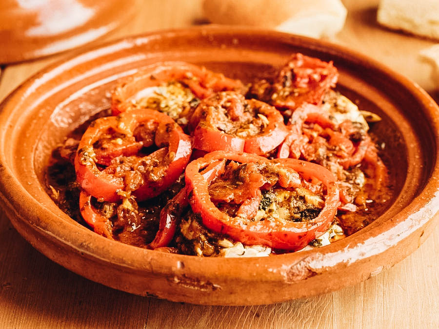 Тажин, приготовленный в глиняном горшочке в североафриканском стиле, представляет собой ароматное и пряное блюдо, которое является классическим для марокканской кухни. Фрикадельки, которые местные жители называют кефта мкауара, готовятся в томатном соусе, и традиционно в состав блюда также входят яйца-пашот, что делает блюдо чем-то похожим на шакшуку, только в рецепте последней фрикадельки не используются. Обычно фрикадельки приправляют кинзой, тмином, луком, паприкой, петрушкой, перцем и солью, а в сам соус можно добавить кайенский перец или перец чили.