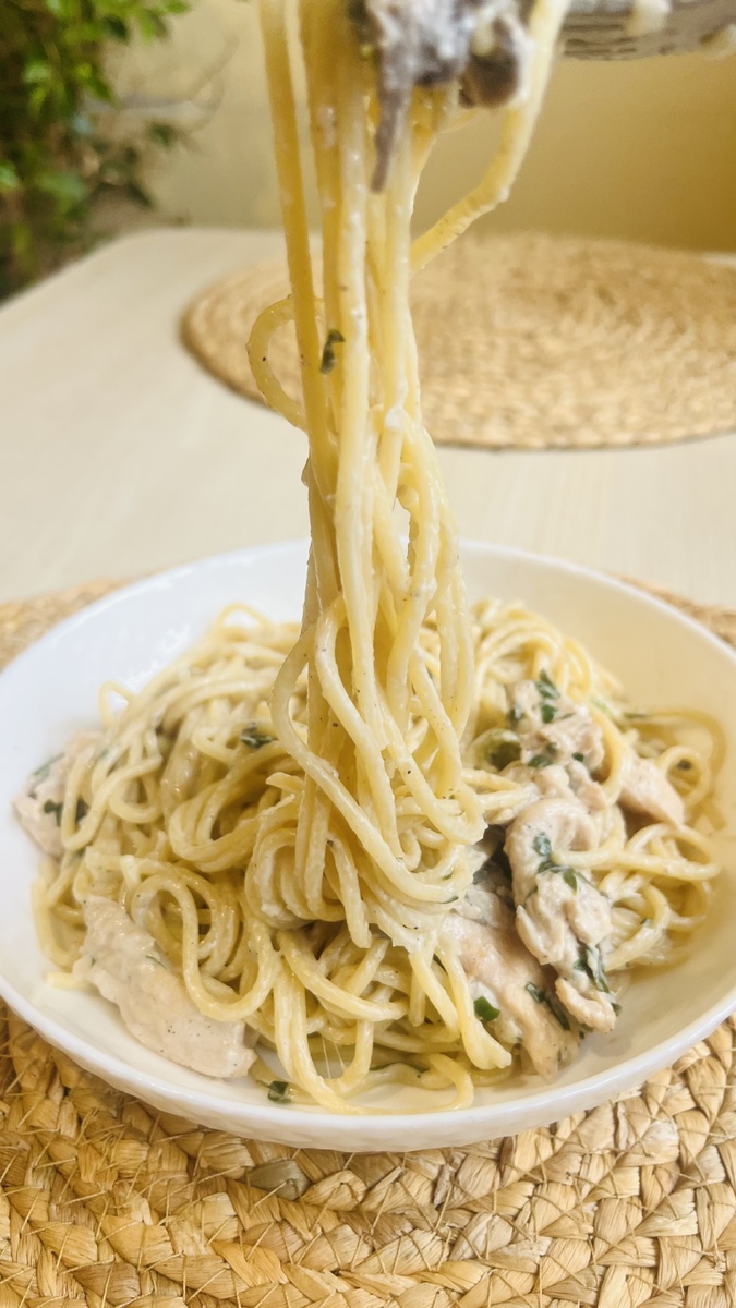 Спагетти с грибами и курицей — трудно устоять перед искушением