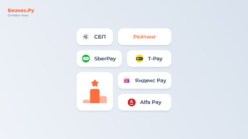 Бизнес.Ру Онлайн-Чеки имеет в партнерах различные платежные сервисы, предлагая низкие комиссии, что позволяет подобрать выгодный вариант под особенности вашего бизнеса.