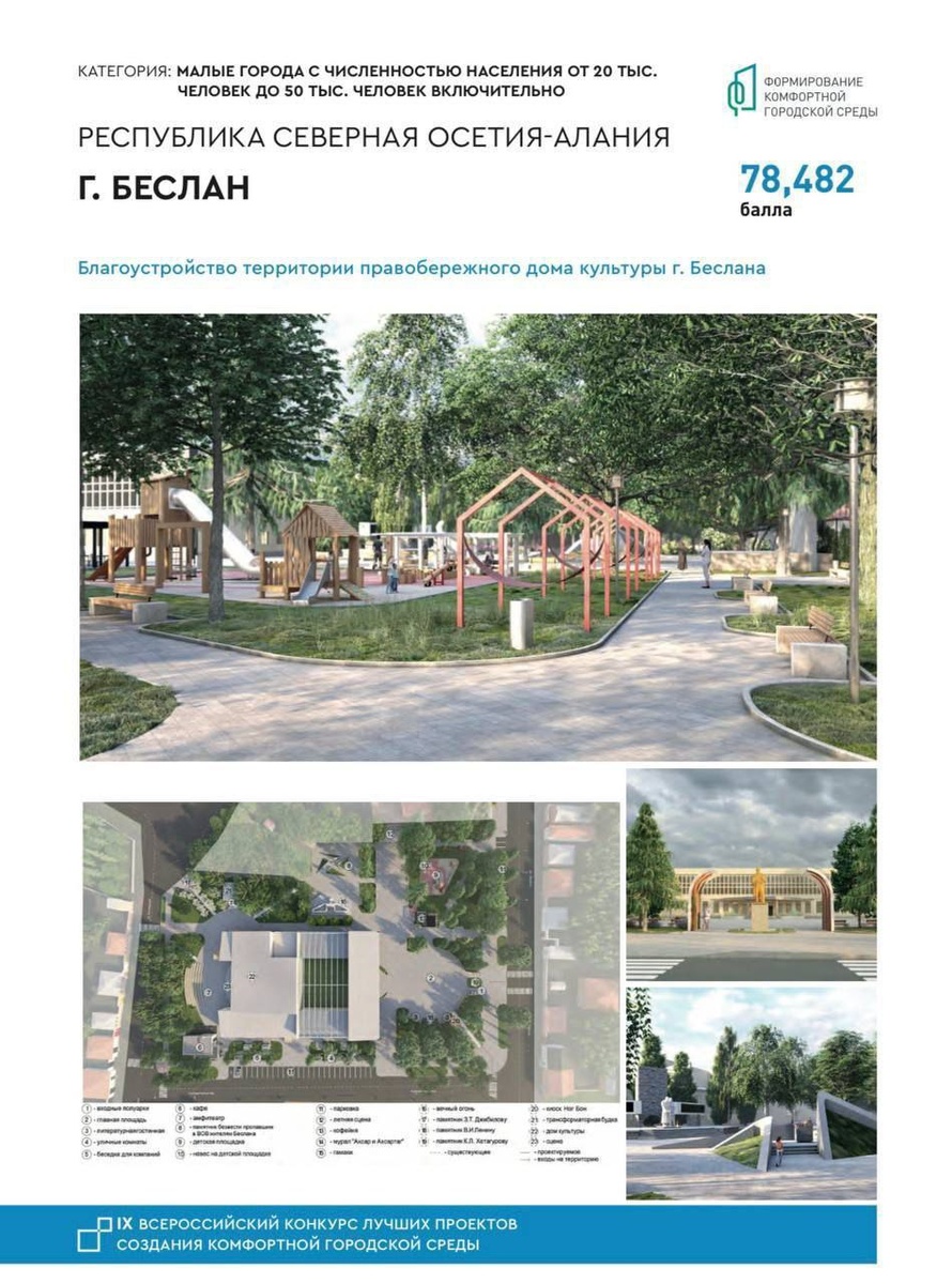 В Беслане благоустроят территорию правобережного ДК. Работы проведут в рамках Всероссийского конкурса «Малые города и исторические поселения» нацпроекта «Инфраструктура для жизни». На территории заменят асфальтовое покрытие, проложат новое освещение, облагородят памятник выходцам из Беслана - участникам Великой Отечественной войны. Установят детскую площадку. Проведут работы по озеленению, а вокруг установят парковочные зоны. Кроме того, здесь установят уличную библиотеку. 📰 Вести Алания | Владикавказ