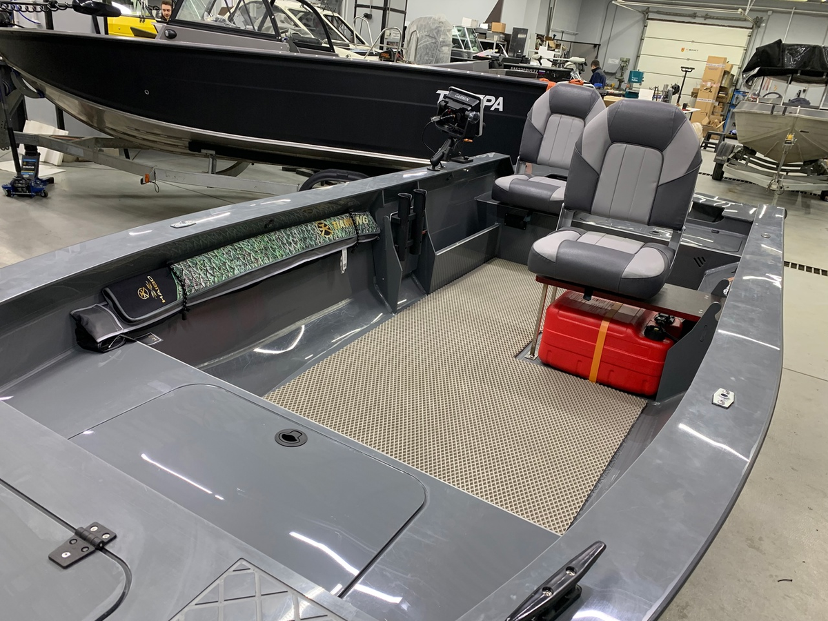 Лодка исключительно рыболовная и задача стояла организовать комфорт для двоих спинингистов.