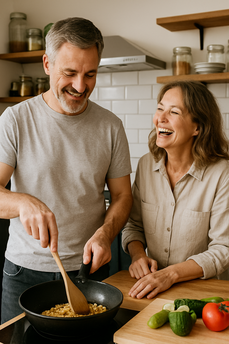 Этой историей с нами поделилась Лариса, 45 лет, из Нижнего Новгорода. В браке 21 год. Живёт с мужем и младшей дочерью. Старший сын учится в другом городе. Казалось бы, семья крепкая, но за последние пару лет внутри стало пусто. Пока однажды всё не изменилось… с борща. Я никогда не считала себя несчастной. У нас с Сашей всё как у людей: квартира, работа, дети, ремонт когда-то делали. Ни измен, ни скандалов. Только вот разговоров стало всё меньше. Не о делах — а настоящих. Где не “передай соль”, а “что ты чувствуешь?”. Их не было. Я, наверное, смирилась. Думала, ну возраст, ну устали, ну дети выросли — привычно же. А потом начались выходные, в которые мой муж стал готовить. И с этого началось что-то совершенно новое. Всё началось с супа Это было весной. Я проснулась в субботу — он на кухне. Не я, а он. Нарезает картошку. Морковку. Булькает кастрюля. Я: — Ты что, заболел? Он, не оборачиваясь: — Решил сварить суп. Давно хотел. Не мешай. Я села на стул, будто меня током ударило. Мы вместе 2