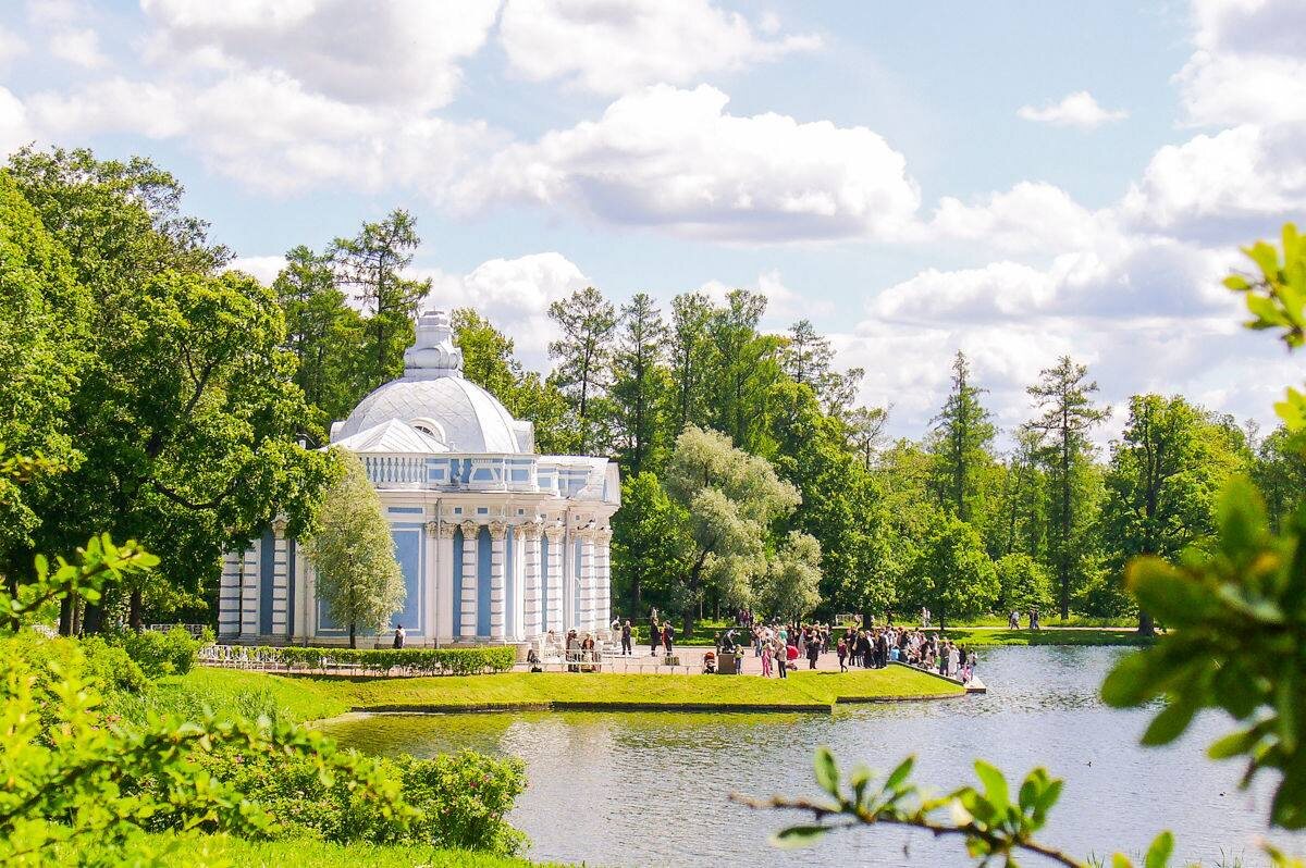 Откуда я о них знаю? Присмотрела, когда водила гостей в парке Царского Села к пруду у павильона Грот. Вот он тут, снят от Камероновой Галереи.