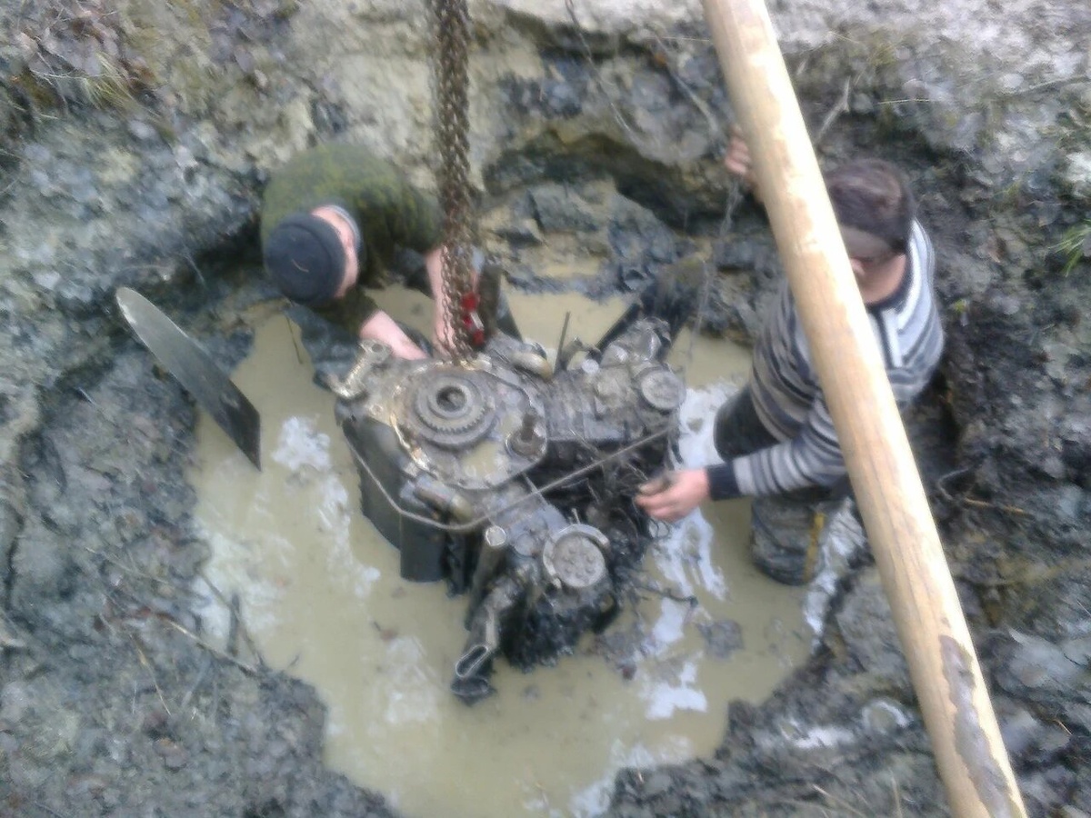 Исследование места падения самолета началось за три года до этого. Из воронки были извлечены фрагменты капотов, приборов из кабины пилота, кусок брони, осколки бронестекла, радиаторы. На одной из панелей остались следы пуль 7,92, маслорадиатор также был пробит. Поисковики предположили, что самолет был сбит истребителями. Из воронки торчала труба от моторамы. При расчистке и откачки болотной жижи показался двигатель самолета.