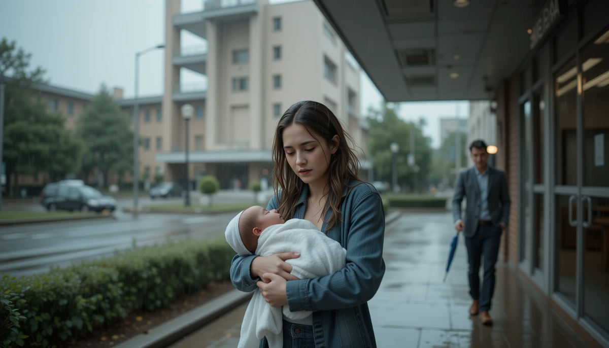 Дождь превратился в ливень. Полина стояла под козырьком роддома, промокшая, с новорождённым на руках, и не понимала, что происходит. «Ты что, оставляешь нас здесь? Под дождём?» Виктор уже отошёл на несколько шагов, обернулся раздражённо: «У тебя ноги есть — сама дойдёшь! Вызови такси или автобусом доберись, я не могу сейчас». Полина ошеломлённо смотрела, как муж торопливо уходит, втянув голову в плечи под дождём. Не оборачиваясь. Словно убегая.