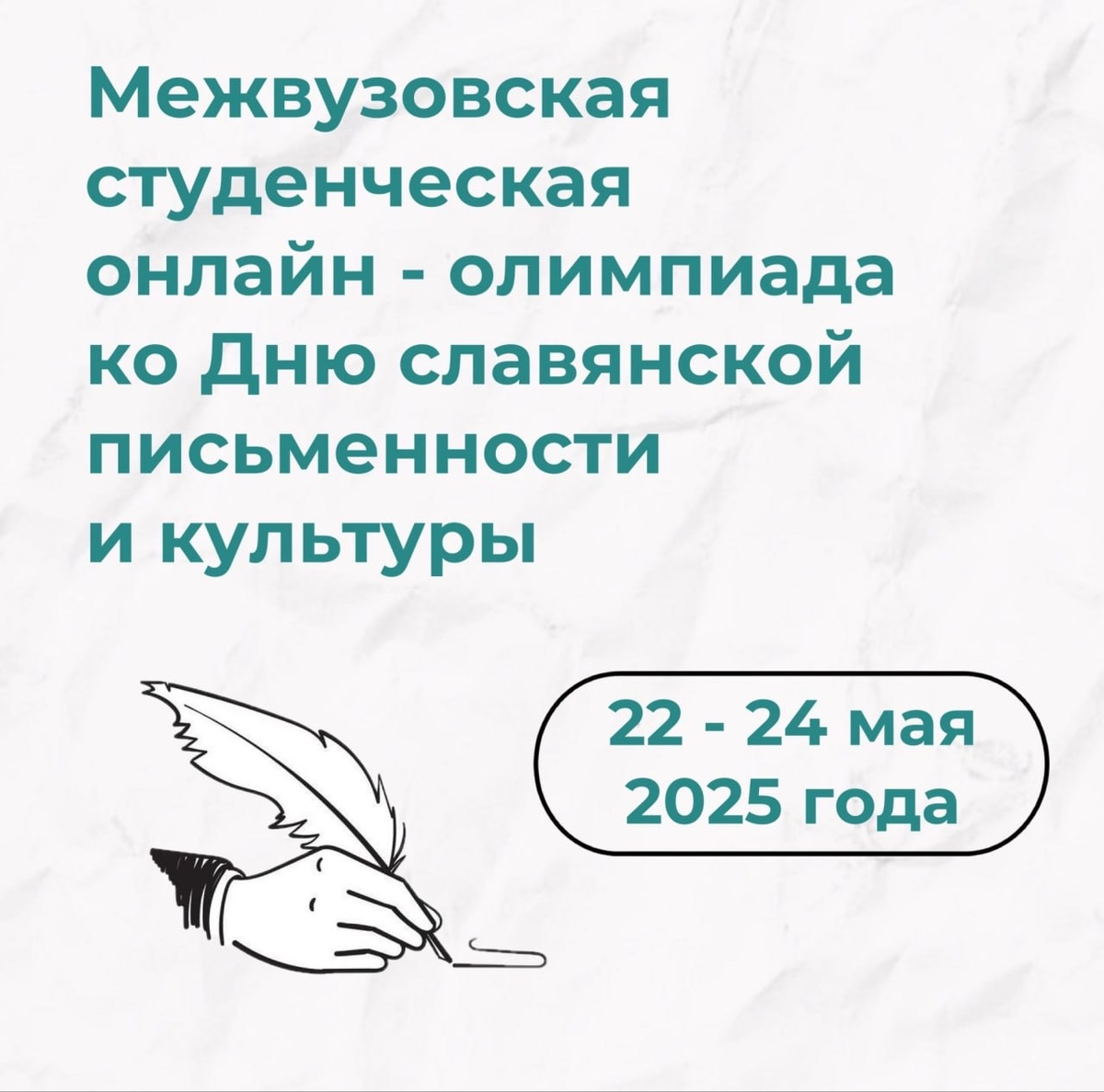 ✍️Приглашаем вас принять участие в Межвузовской студенческой онлайн-олимпиаде, посвященной Дню славянской письменности и культуры, которая будет проходить с 22 по 24 мая 2025 года с использованием образовательной платформы Moodle.
