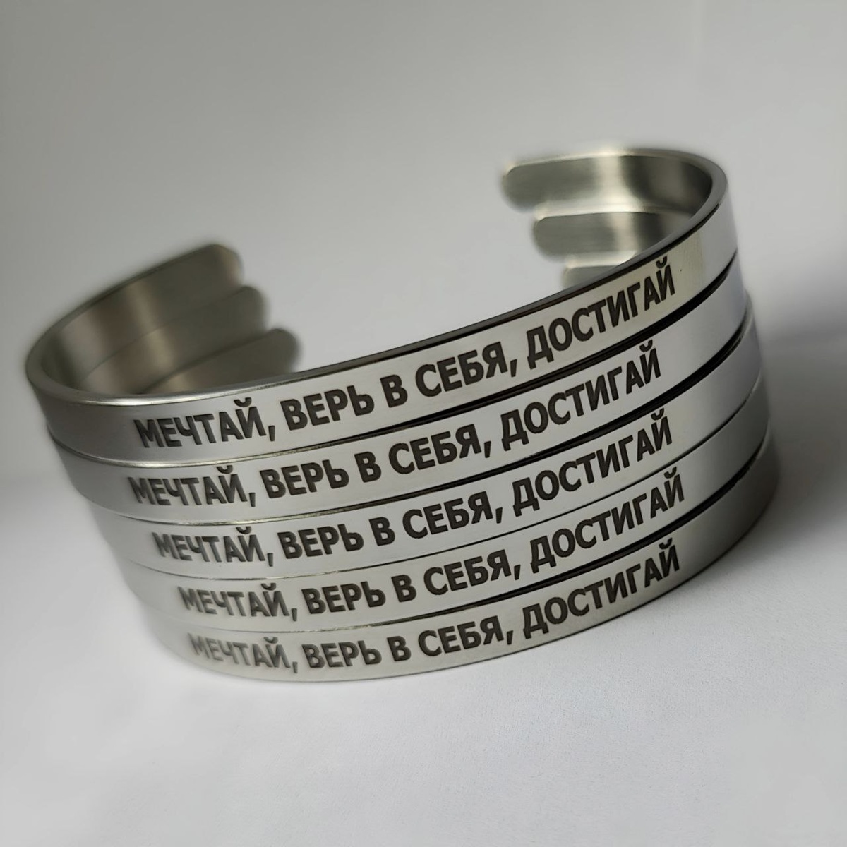 🔥 Браслеты из нержавеющей стали с мотивирующей гравировкой! 🔥 Каждый день — новый шаг к мечте. Наденьте на запястье не просто аксессуар, а мощный заряд мотивации! ✨ Надпись на внешней стороне: "Мечтай, верь в себя, достигай!" 💫 Или выберите свою — любую вдохновляющую фразу, имя или дату. ✔️ Гипоаллергенная нержавеющая сталь — не темнеет и не теряет вид. ✔️ Стильный унисекс-дизайн — подойдет и мужчинам, и женщинам. ✔️ Идеальный подарок для себя или близкого человека. 📌 Закажите свой браслет с гравировкой уже сегодня! Арт. WB - 244155356 📦 #МотивацияНаЗапястье #ДостигайЦелей #СтильныйАксессуар #ПодарокСмыслом #Стиль #Браслетсгравировкой #НержавющаяСталь #TiGrav🐾
