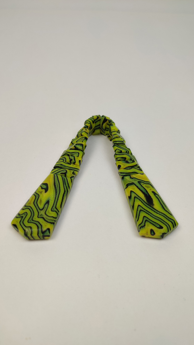Узор — кислотные линии, словно текущие по поверхности, создают эффект движения.